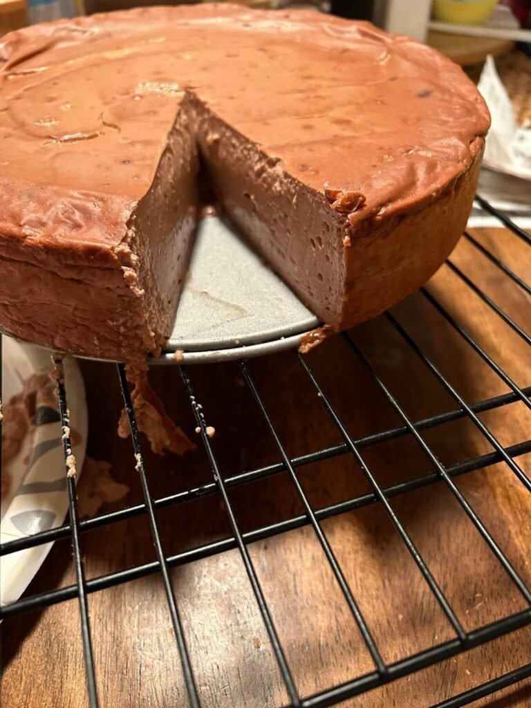 When you finally release it from the springform pan, you’ll notice how firm yet velvety the texture has become — the perfect consistency for slicing.