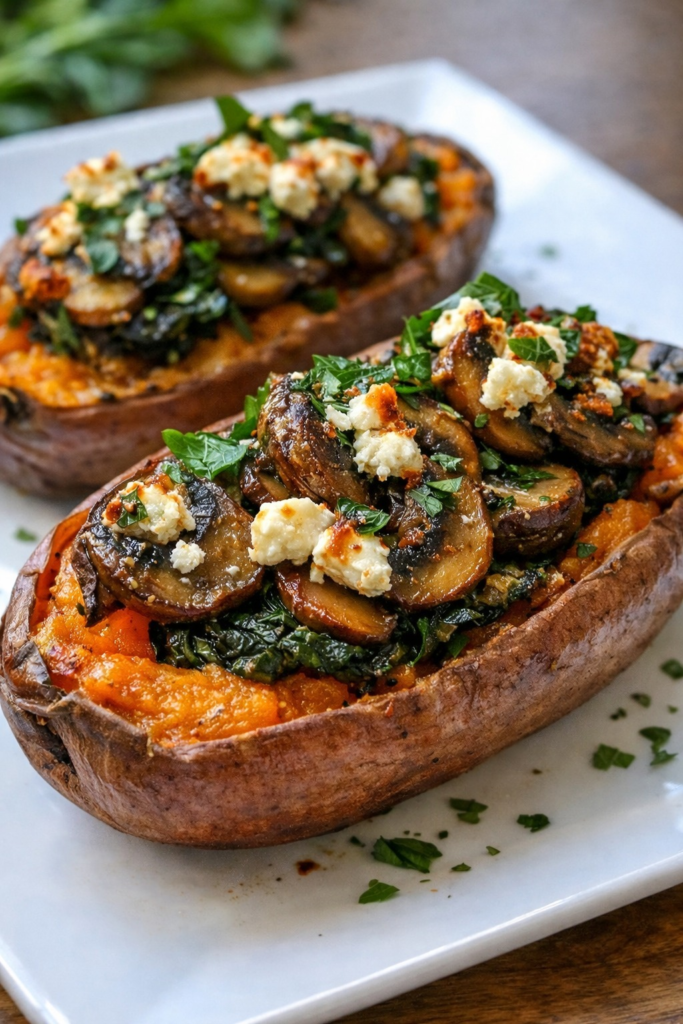 Stuffed Sweet Potatoes with Garlic Mushrooms & Spinach is a nourishing, wholesome, and visually stunning dish that brings together natural sweetness, earthy vegetables, and savory flavors in one satisfying meal. This recipe is perfect for those who want comfort food without compromising their health goals.