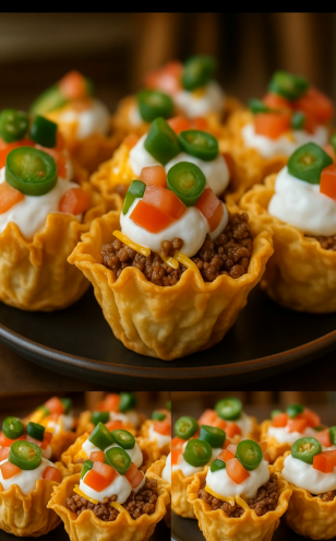 - Place the phyllo shells (or baked wonton cups) on a tray.